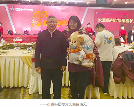 ·····衢州骨傷科醫院總經理王欽、市衛健委黨委委員、副主任潘新花、黨委委員劉文勇,親自迎接援鄂英雄回家······
