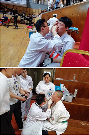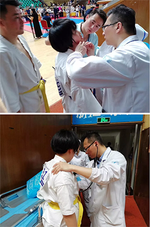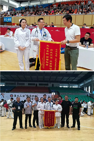 4月30日,“極真獅魂”全國空手道大會 在浙江.余杭 成功舉行,杭州余杭邦爾醫院(杭州余杭骨科醫院)黨員醫療服務隊為第十二回“極真獅魂”杯全國空手道大會提供會場醫療保障。醫院組建了以骨一科主任、副主任醫師、醫學碩士張廣為隊長的優秀醫護團隊,負責現場急救處置工作,展示了醫院過硬的技術及昂揚的風貌。主辦單位對我們的服務給予高度評價,杭州市體育局領導親自為我院授予錦旗。